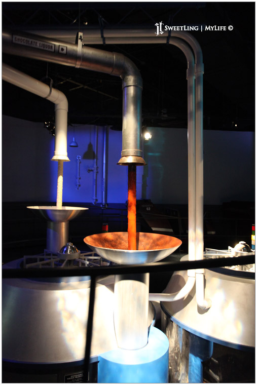 Entering the Chocolate Tour, a 10 min free Omnimover dark ride tour begins in a tropical rain forest where cocoa beans grow and are harvested. Then follow their journney across the ocean to America and their delivery to the sweetest place on earth – Hershey, Pennsylvania. The cocoa beans continue through a simulated Hershey’s chocolate factory where we will see, feel, smell and hear the delicious transformation from bean to milk chocolate.